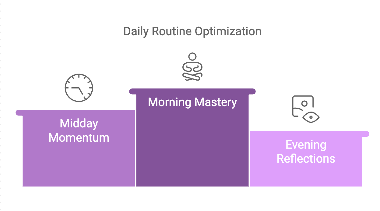Major life changes begin with small, consistent actions. Rather than overhauling your entire schedule overnight, identify one area to optimize—a morning ritual, a single work habit, or an evening wind-down routine.